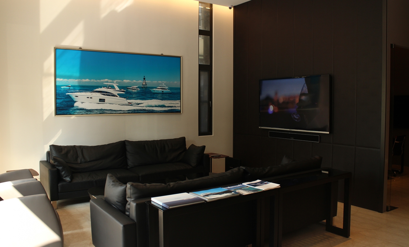 展示中心採用溫潤色溫與高演色照明,搭配間接光源與防眩光配置,使整體空間更顯典雅,並提供舒適的參觀動線。光線不僅提升展示效果,也強化品牌形象,使每一艘遊艇皆能在最理想的光環境下展現其高端價值。